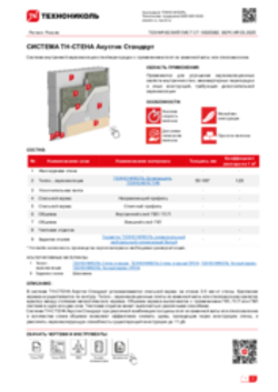 Система ТН-СТЕНА Акустик Стандарт при различной комбинации толщины плит из каменной ваты или стекловолокна и количества слоев обшивки позволяет эффективно снижать шумы, проходящие через конструкцию стены, и увеличить звукоизолирующую способность существующей конструкции до 11 дБ.