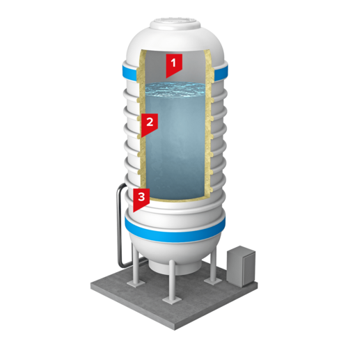 В системе ТН-ТЕХИЗОЛЯЦИЯ Кислород в качестве теплоизоляционного материала используется каменная вата без связующего марки ВМ-70 по ГОСТ 4640-2011. Для изоляции конструкций оборудования и трубопроводов, содержащих сильные окислители (жидкий кислород), не допускается применение теплоизоляционных материалов, содержащих органические вещества. Наличие органических веществ в среде кислорода способствует горению минеральной ваты, высокое содержание органики может быть взрывоопасно. Теплоизоляционный материал из каменной ваты уплотняется между внешними стенками резервуаров механическим способом по средствам выдувных установок или вручную.
